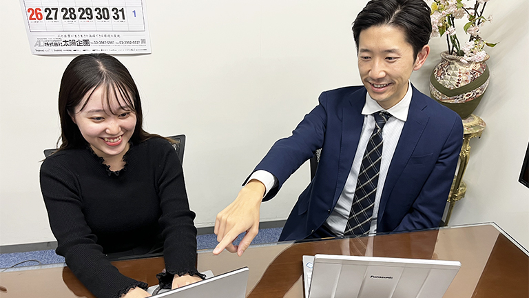 大学で広告や映像を学んでいた流れで、就活では広告業界を志望。「介在価値の高い仕事がしたい」という考えから、広告業界の中でも、多くの人の人生に大きな影響を与える求人広告に興味を持ちました。求人広告の会社を中心に就職活動を展開する中でタイキを知り、応募。選考中にいろんな先輩に会い、社風の良さを感じたことが決め手となって入社しました。