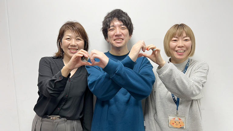 各部署の全体像の話から踏み込んで、ここからは内勤スタッフのリアルな声を聞いていきたいと思います。代表して、総務経理部のけいこさん、営業アシスタントのぼりさん、営業企画部のふーてぃーさん、よろしくおねがいします。