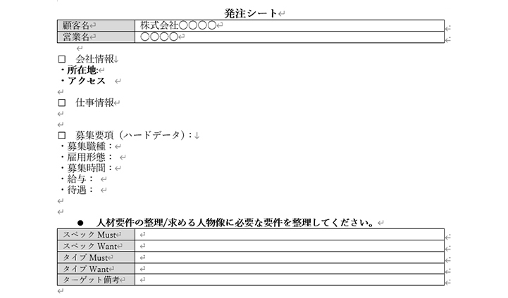 営業は、制作スタッフへ発注する準備として、商談時のヒアリング内容を整理します。改めて取材の機会をいただいた場合は、その取材内容もあわせて整理します。