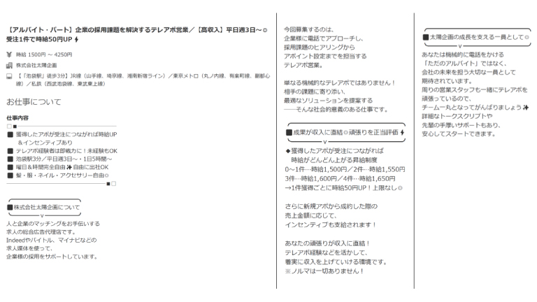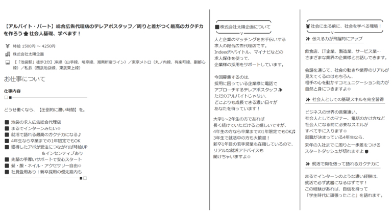 実は両方とも、タイキの同じポジションの求人広告なんです。違う募集に見えませんか?