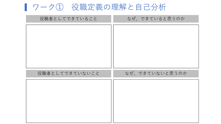 その達成に向けて、研修の中でも中核となる今回のプログラムでは、自己分析と開発計画の策定に取り組みました。