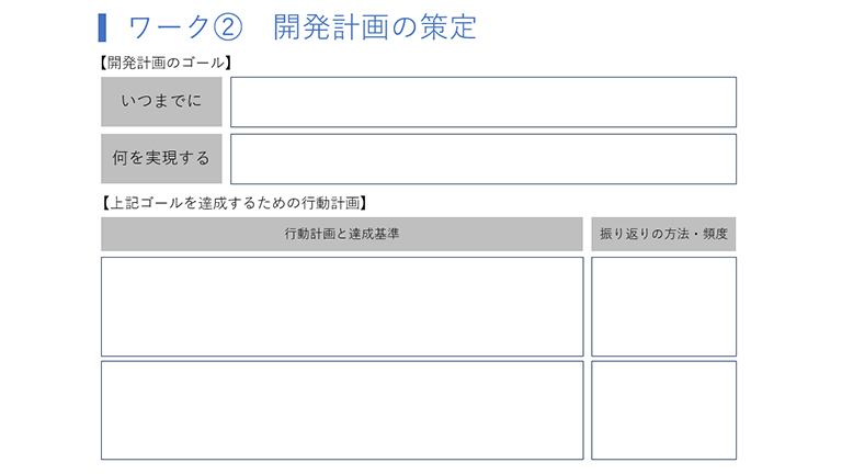 続いて、各自が目指すべきチーフ・リーダー像を明確にしていきました。役職定義は1つですが、それをどう体現するかは人それぞれで、理想のチーフ・リーダー像も十人十色です。自分のどこを伸ばし、何を改善していくべきなのかを整理し、目標を実現させるための開発計画・行動計画を立てました。